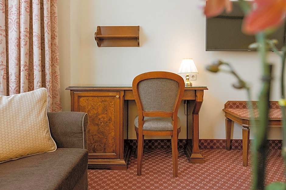 A quiet single room facing the inner courtyard, with air conditioning, a flat-screen Sky satellite TV, and a mini-bar.